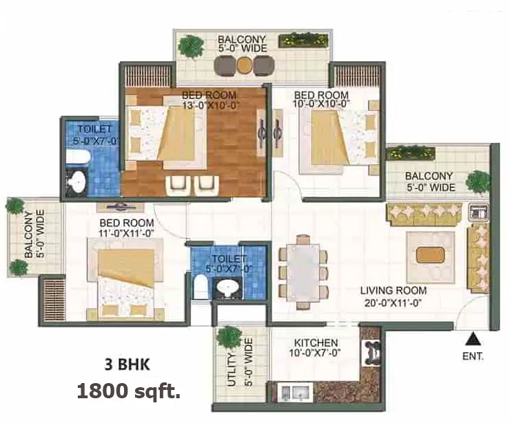 3 BHK + 3T