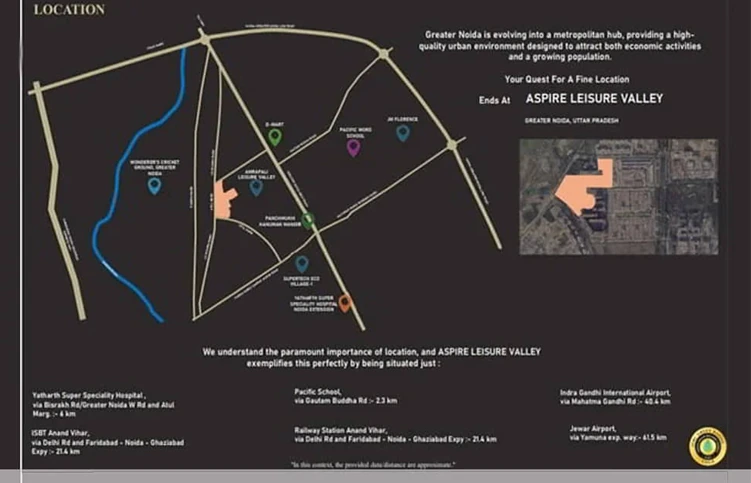 Aspire Leisure Valley is an ultra-premium high-rise residential enclave located in Sector 1, Noida Extension, crafted by AU Real Estate in association with NBCC. Positioned in one of Greater Noida West’s most sought-after luxury zones and directly facing D’Mart, the project stands apart for its refined architecture, superior master planning, and high-end living experience.